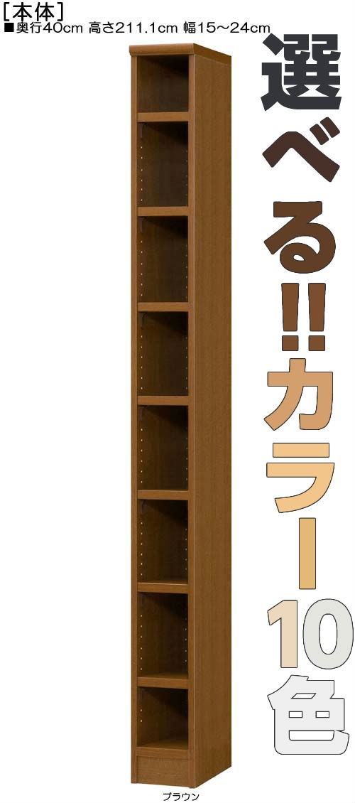 洗面所収納 ジャストサイズ!横幅を1cm単位でオーダー!棚板厚さ2.5cm 本棚。 奥行40cm×高さ211.1cm×幅15〜24cm