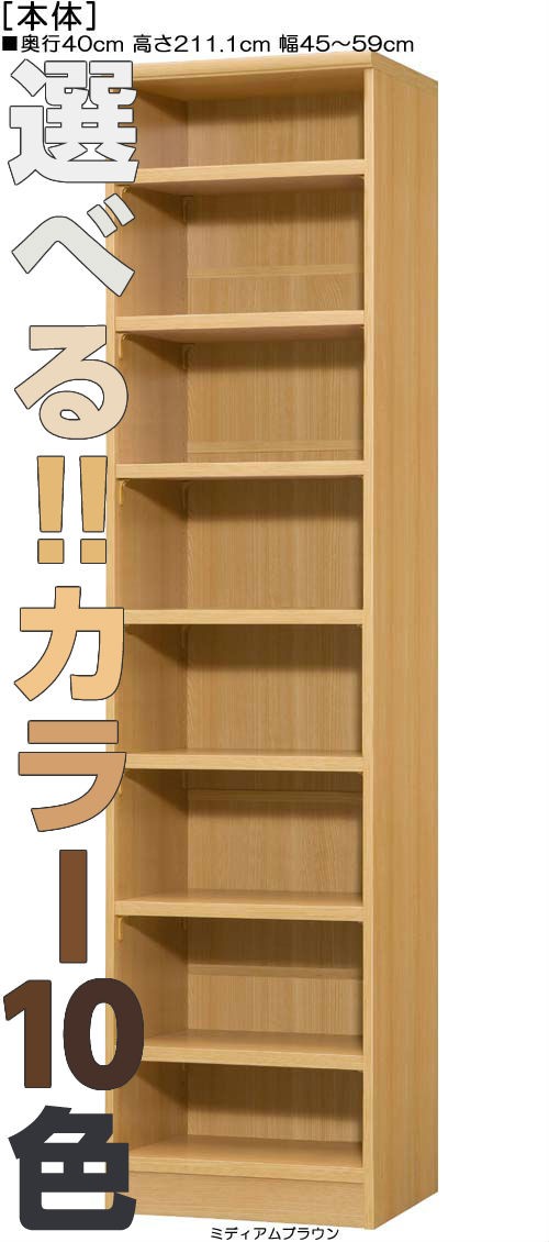 オープンラック、物品棚 ジャストサイズ!横幅を1cm単位でオーダー!棚板厚さ2.5cm 本棚。 奥行40cm×高さ211.1cm×幅45〜59cm