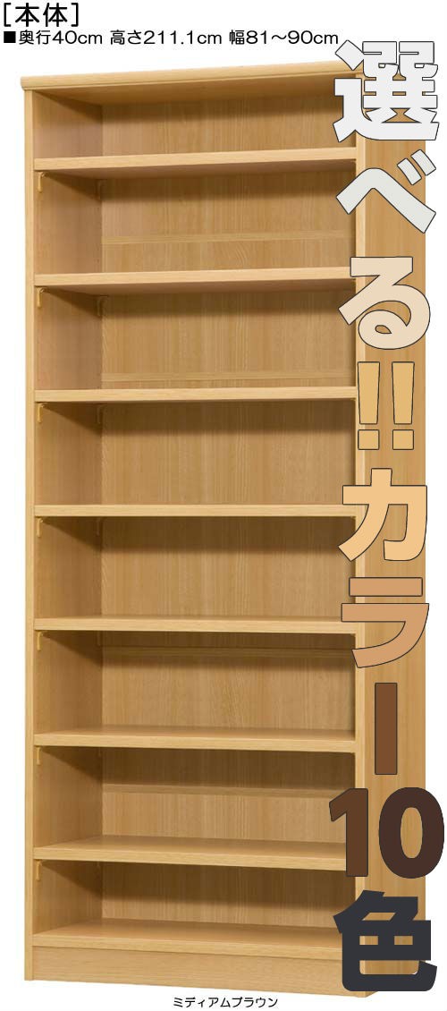 オープンラック、物品棚 ジャストサイズ!横幅を1cm単位でオーダー!棚板厚さ2.5cm 本棚。 奥行40cm×高さ211.1cm×幅81〜90cm
