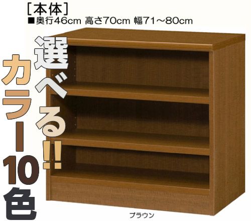 本棚、書棚 既成品に無いサイズ!横幅を1cm単位でオーダー!棚板厚さ2.5cm 本棚。 奥行46cm×高さ70cm×幅71〜80cm