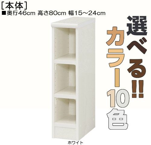 キッチン用トールキャビネット 既成品に無いサイズ!横幅を1cm単位でオーダー!棚板厚さ2.5cm 本棚。 奥行46cm×高さ80cm×幅15〜24cm