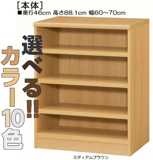 本棚、書棚 既成品に無いサイズ!横幅を1cm単位でオーダー!棚板厚さ2.5cm 本棚。 奥行46cm×高さ88.1cm×幅60〜70cm