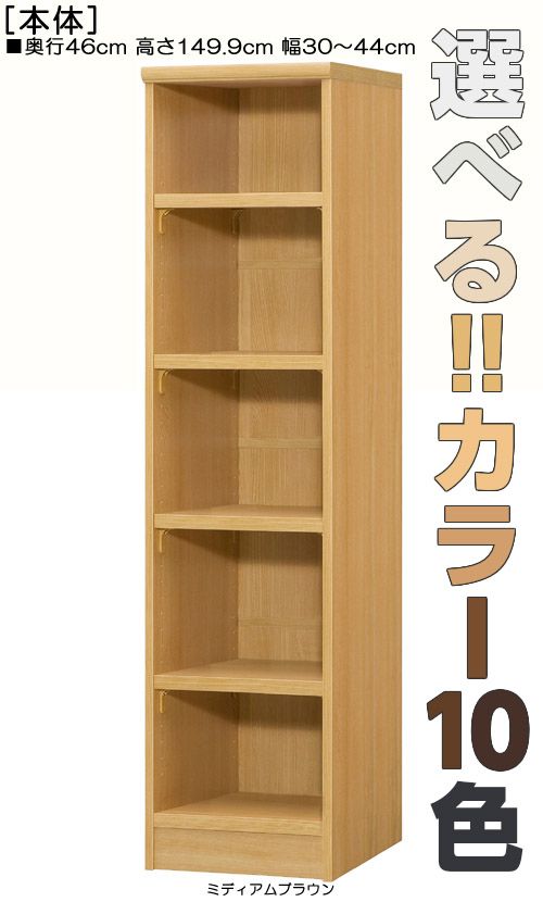 壁収納 高さ149.9cm幅30〜44cm奥行46cm厚棚板(棚板厚み2.5cm)文庫本シェルフ 幅オーダー サニタリ本棚整理