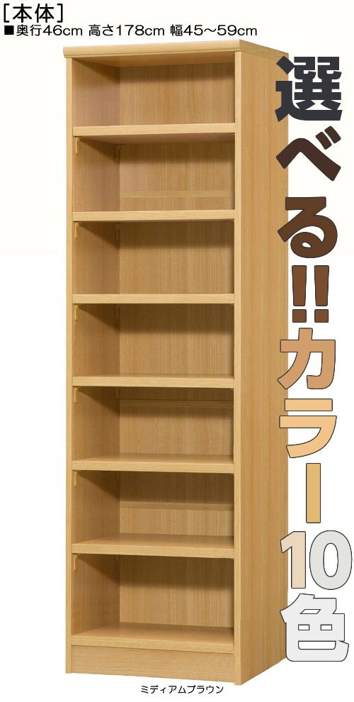 キャビネット、書庫 既成品に無いサイズ!横幅を1cm単位でオーダー!棚板厚さ2.5cm 本棚。 奥行46cm×高さ178cm×幅45〜59cm