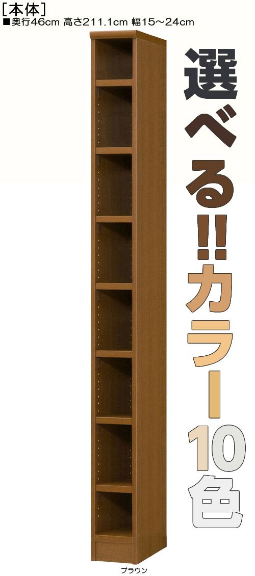 隙間収納 高さ211.1cm幅15〜24cm奥行46cm厚棚板(棚板厚み2.5cm)タオルシェルフ オーダー 応接間本棚整理