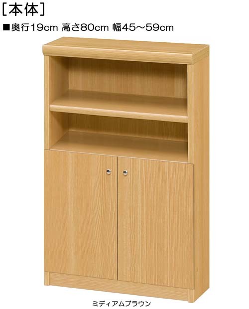 下部扉 標準棚板 CD収納 高さ80cm幅45〜59cm奥行19cm 下扉高さ41.5cm 本ボード ブラウン ランドリー 飾る