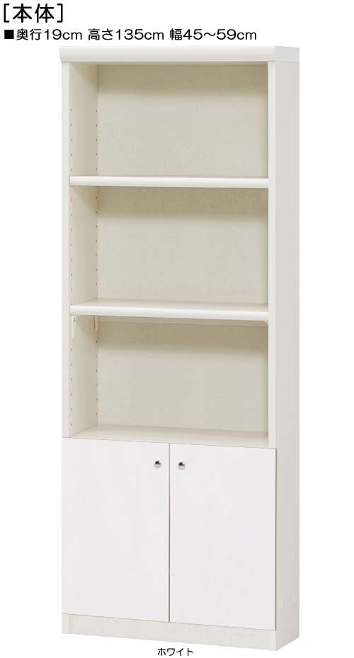 下部扉 標準棚板 コミック収納 高さ135cm幅45〜59cm奥行19cm 下扉高さ41.5cm 新聞家具 オーダー1cm単位 客室 片付け