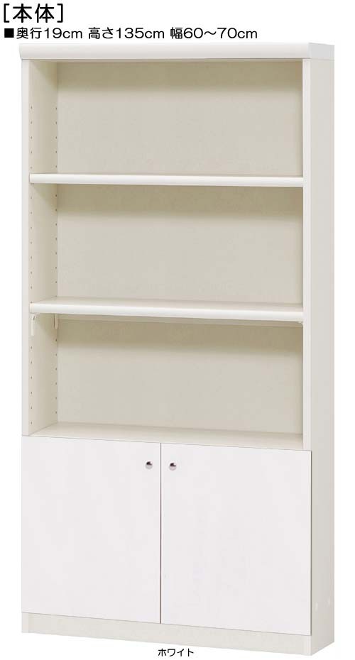 下部扉 標準棚板 コミック収納 高さ135cm幅60〜70cm奥行19cm 下扉高さ41.5cm 雑貨収納 ブラック 納戸 保管