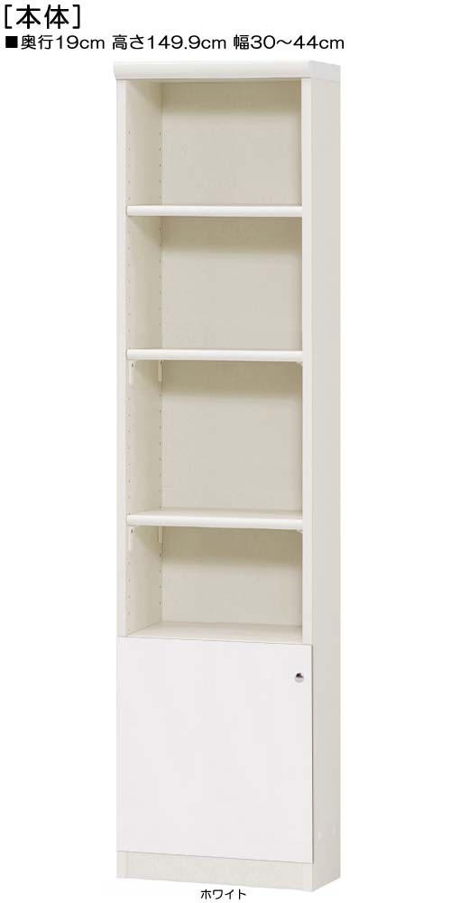 下部扉 標準棚板 文庫本収納 高さ149.9cm幅30〜44cm奥行19cm 下扉高さ41.5cm 書籍シェルフ 10色 トイレ 保管