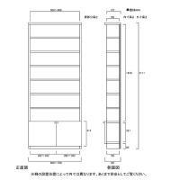 下部扉 標準棚板 薄型家具 高さ211.1cm幅60〜70cm奥行19cm 下扉高さ41.5cm 食器棚 サイズ オーダー 書斎 整理