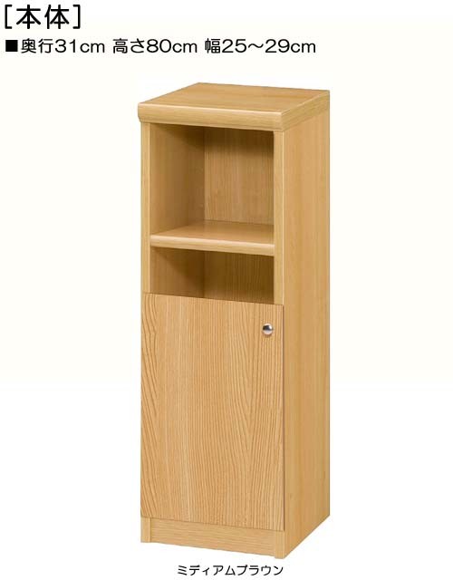 下部扉 標準棚板 キッチン隙間収納 高さ80cm幅25〜29cm奥行31cm 下扉高さ41.5cm 書籍シェルフ 10色 トイレ 保管