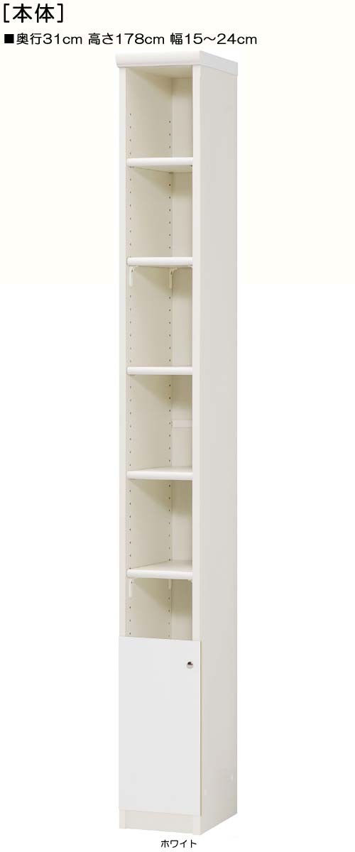 下部扉 標準棚板 隙間収納 高さ178cm幅15〜24cm奥行31cm 下扉高さ41.5cm 教科書ラック ホワイト 塾 飾る