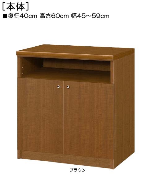 下部扉 標準棚板 扉付きリビングボード 高さ60cm幅45〜59cm奥行40cm 下扉高さ41.5cm 新聞家具 オーダー1cm単位 客室 片付け