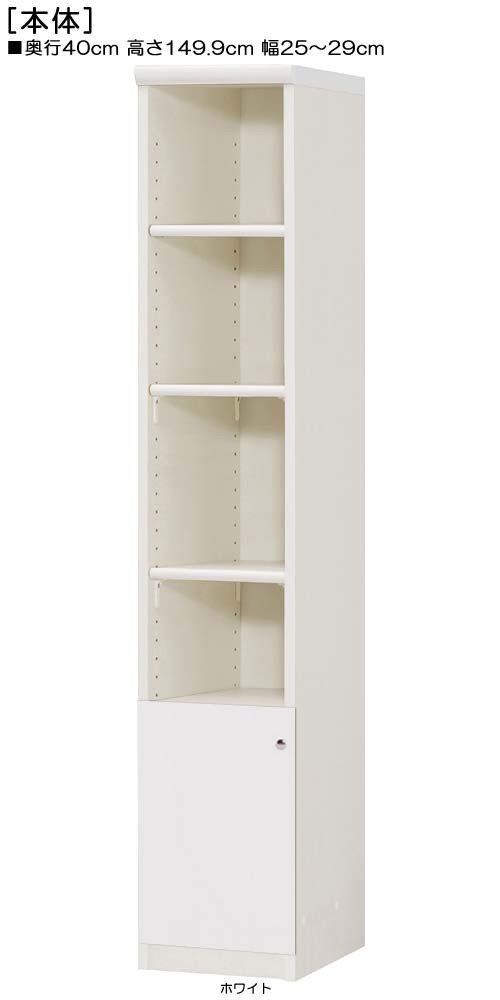 下部扉 標準棚板 扉付き木製整理収納棚 高さ149.9cm幅25〜29cm奥行40cm 下扉高さ41.5cm DVDディスプレイ オープン 寝室 整理