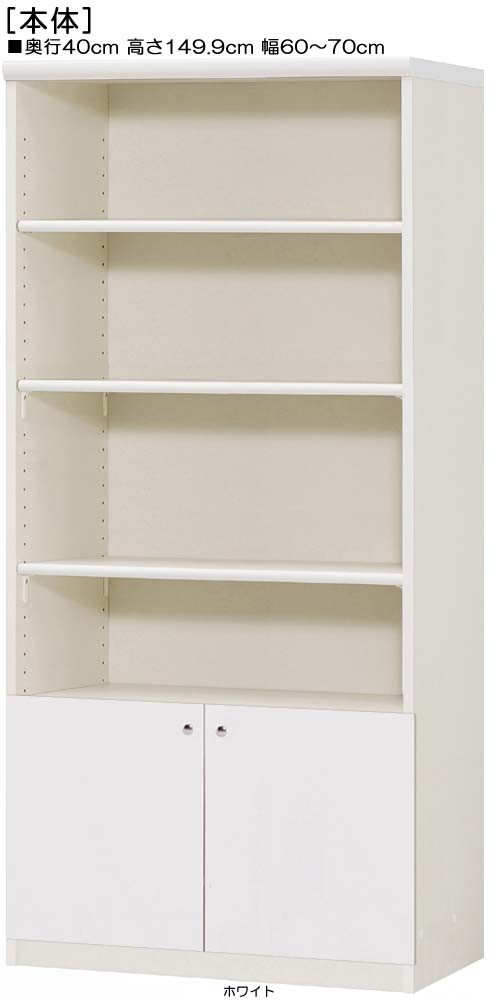 下部扉 標準棚板 木製扉付きチェスト 高さ149.9cm幅60〜70cm奥行40cm 下扉高さ41.5cm 本シェルフ 日本製 ウォークインクローゼット 保管