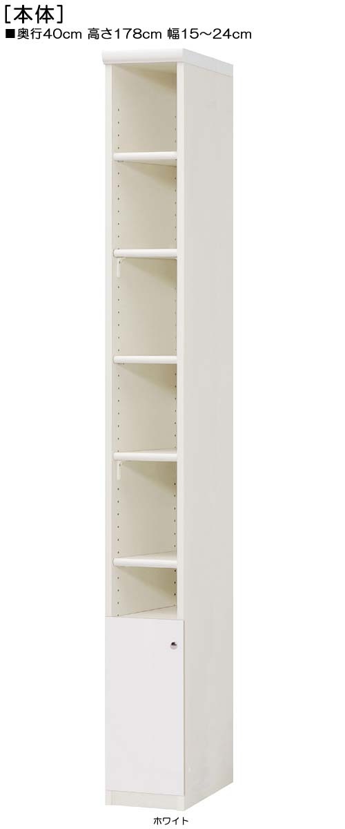 下部扉 標準棚板 扉付きスリム収納 高さ178cm幅15〜24cm奥行40cm 下扉高さ41.5cm 絵本ディスプレイ 棚移動可 書斎 整理