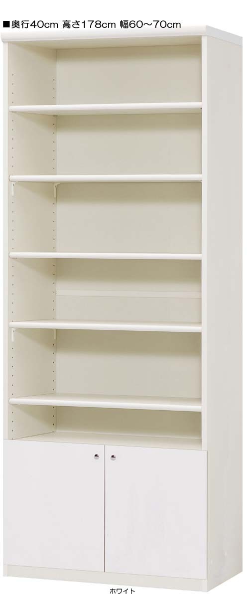 下部扉 標準棚板 扉付木製ファイルキャビネット 高さ178cm幅60〜70cm奥行40cm 下扉高さ41.5cm 教科書ラック ホワイト 塾 飾る