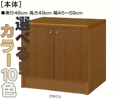 | 全面扉 | 標準棚板(厚さ1.7cm) | 棚板耐荷重:5kg | 奥行46cm | 高さ49cm | 幅45〜59cm | お客様組立て | 低ホルムアルデヒド |