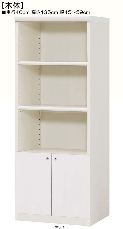 下部扉 標準棚板 オーダー書棚 高さ135cm幅45〜59cm奥行46cm 下扉高さ41.5cm 本ボード ブラウン ランドリー 飾る