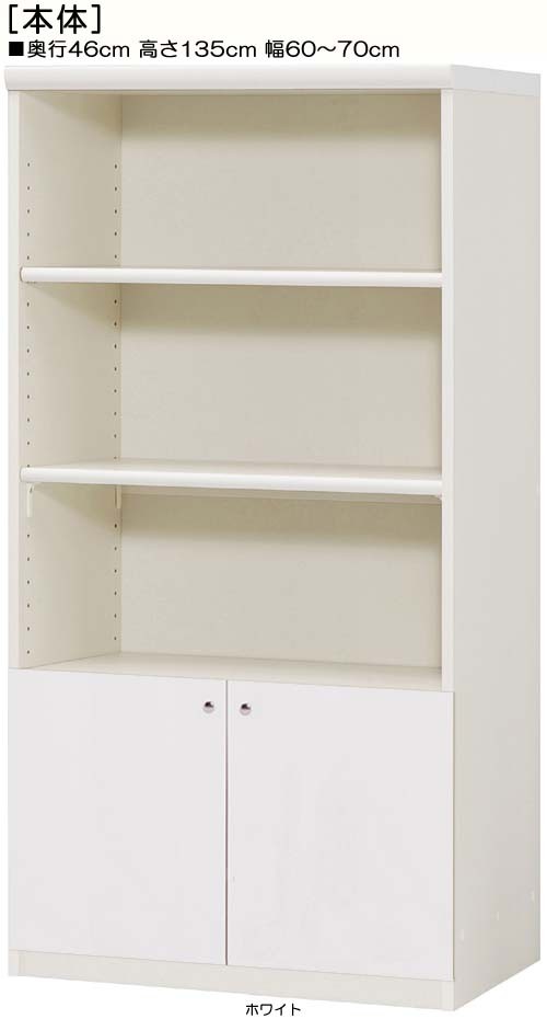 下部扉 標準棚板 オーダー書棚 高さ135cm幅60〜70cm奥行46cm 下扉高さ41.5cm 雑誌ボード 木製 図書室 飾る