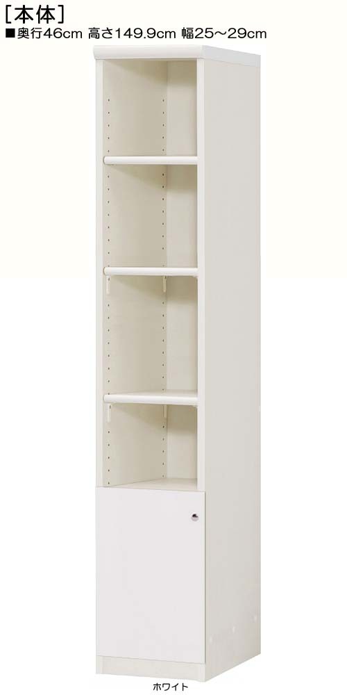 下部扉 標準棚板 リビング隙間収納 高さ149.9cm幅25〜29cm奥行46cm 下扉高さ41.5cm ブルーレイ本棚 ブラウン 洗面所 片付け