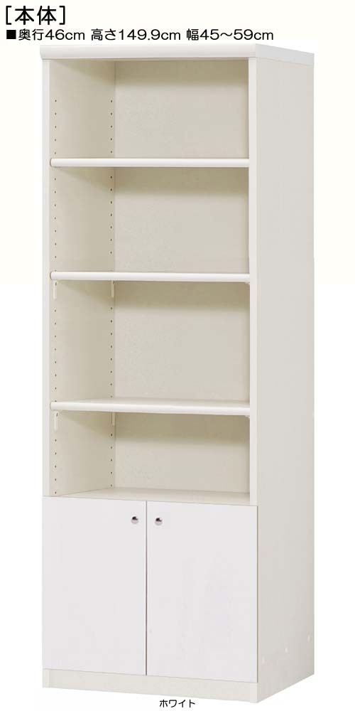 下部扉 標準棚板 オーダー壁面収納 高さ149.9cm幅45〜59cm奥行46cm 下扉高さ41.5cm 飾り家具 移動棚 屋根裏部屋 片付け