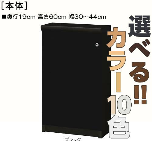| 全面扉 | 標準棚板(厚さ1.7cm) | 棚板耐荷重:9Kg | 奥行19cm | 高さ60cm | 幅30〜44cm | お客様組立て | 低ホルムアルデヒド |