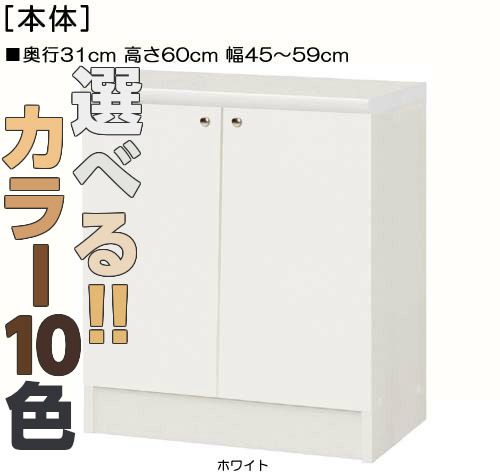 | 全面扉 | 標準棚板(厚さ1.7cm) | 棚板耐荷重:4Kg | 奥行31cm | 高さ60cm | 幅45〜59cm | お客様組立て | 低ホルムアルデヒド |
