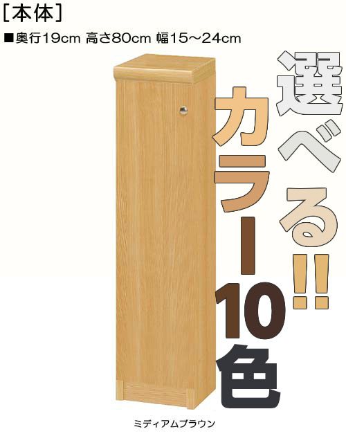 | 全面扉 | 標準棚板(厚さ1.7cm) | 棚板耐荷重:9Kg | 奥行19cm | 高さ80cm | 幅15〜24cm | お客様組立て | 低ホルムアルデヒド |