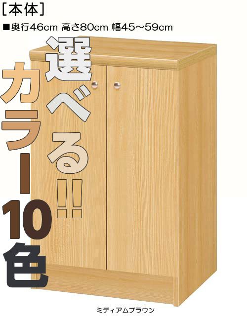 | 全面扉 | 標準棚板(厚さ1.7cm) | 棚板耐荷重:5kg | 奥行46cm | 高さ80cm | 幅45〜59cm | お客様組立て | 低ホルムアルデヒド |