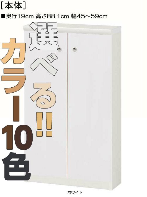 | 全面扉 | 標準棚板(厚さ1.7cm) | 棚板耐荷重:4Kg | 奥行19cm | 高さ88.1cm | 幅45〜59cm | お客様組立て | 低ホルムアルデヒド |