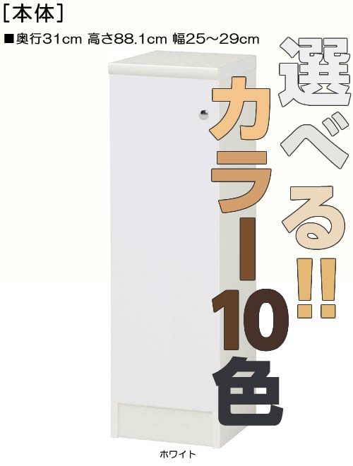 | 全面扉キッチン隙間収納 (棚板厚さ1.7m) 奥行31cm×高さ88.1cm×幅25〜29cm 幅は1cm単位で指定 |