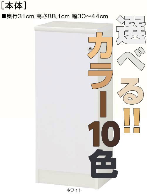 | 全面扉 | 標準棚板(厚さ1.7cm) | 棚板耐荷重:10Kg | 奥行31cm | 高さ88.1cm | 幅30〜44cm | お客様組立て | 低ホルムアルデヒド |
