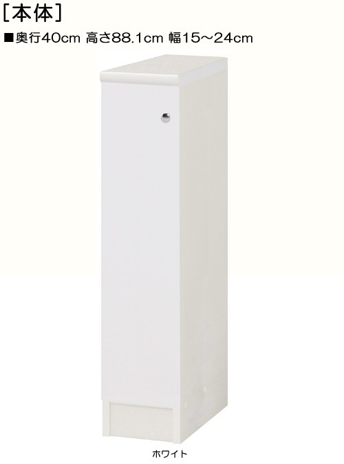 | 全面扉扉付スリムストッカー (棚板厚さ1.7m) 奥行40cm×高さ88.1cm×幅15〜24cm 幅は1cm単位で指定 |