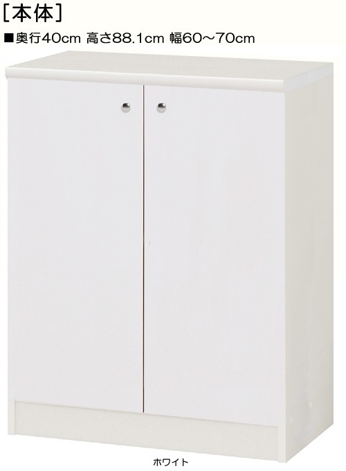 | 全面扉 | 標準棚板(厚さ1.7cm) | 棚板耐荷重:4Kg | 奥行40cm | 高さ88.1cm | 幅60〜70cm | お客様組立て | 低ホルムアルデヒド |