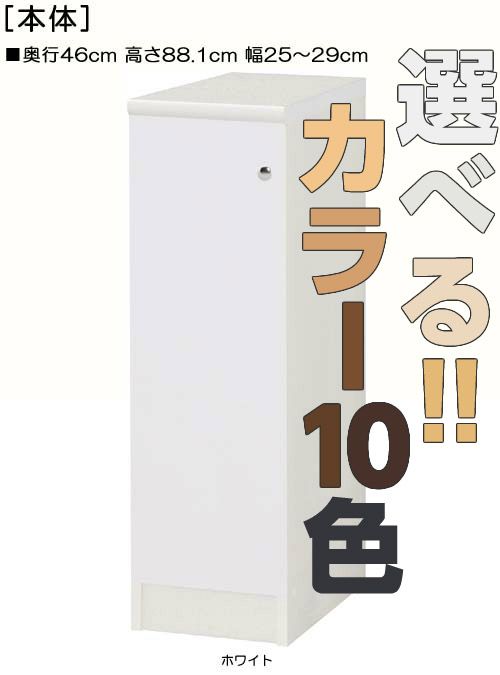 | 全面扉隙間収納 (棚板厚さ1.7m) 奥行46cm×高さ88.1cm×幅25〜29cm 幅は1cm単位で指定 |