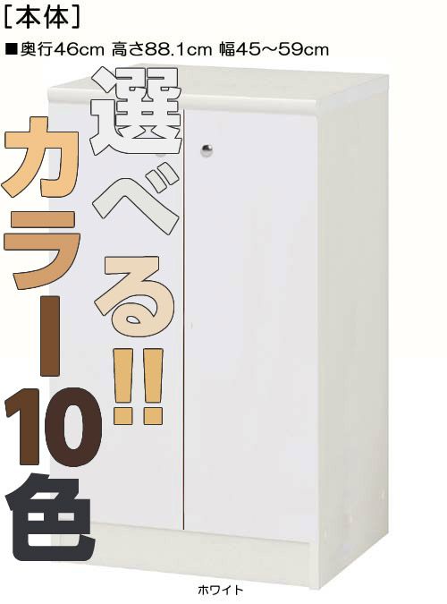 | 全面扉 | 標準棚板(厚さ1.7cm) | 棚板耐荷重:5kg | 奥行46cm | 高さ88.1cm | 幅45〜59cm | お客様組立て | 低ホルムアルデヒド |