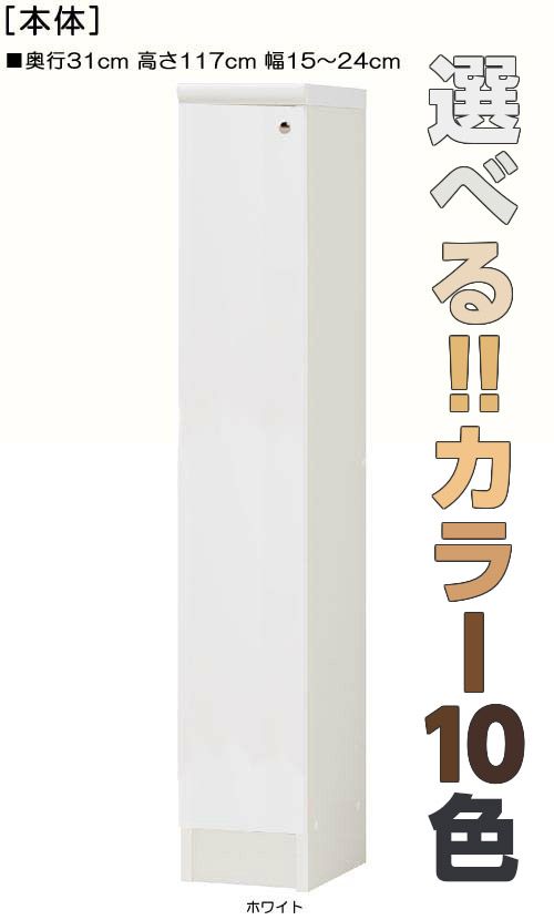 | 全面扉 | 標準棚板(厚さ1.7cm) | 棚板耐荷重:10Kg | 奥行31cm | 高さ117cm | 幅15〜24cm | お客様組立て | 低ホルムアルデヒド |