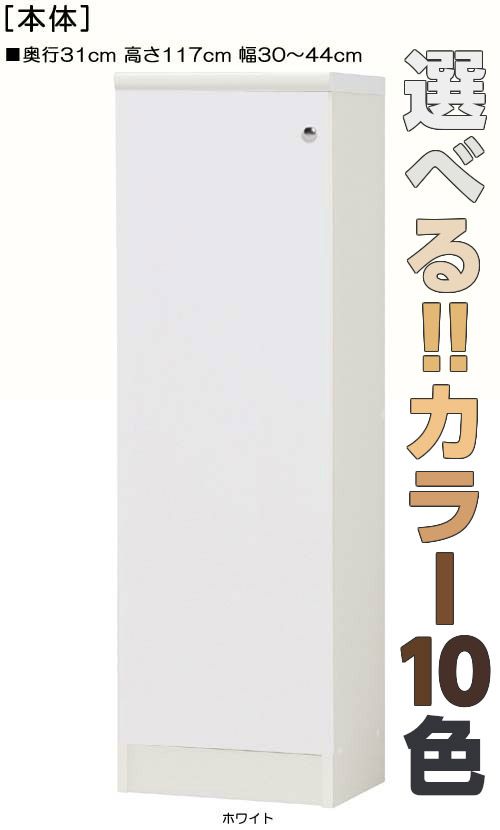 | 全面扉 | 標準棚板(厚さ1.7cm) | 棚板耐荷重:10Kg | 奥行31cm | 高さ117cm | 幅30〜44cm | お客様組立て | 低ホルムアルデヒド |