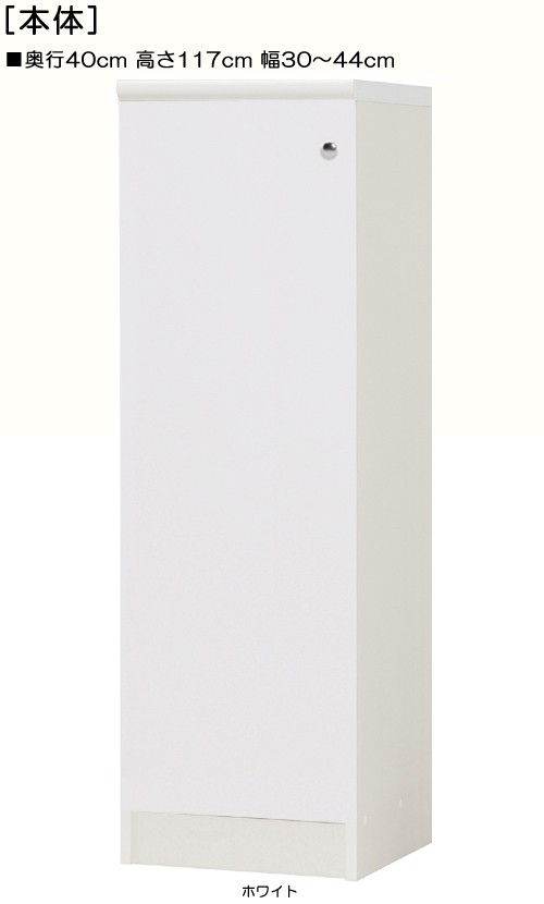 | 全面扉 | 標準棚板(厚さ1.7cm) | 棚板耐荷重:10Kg | 奥行40cm | 高さ117cm | 幅30〜44cm | お客様組立て | 低ホルムアルデヒド |