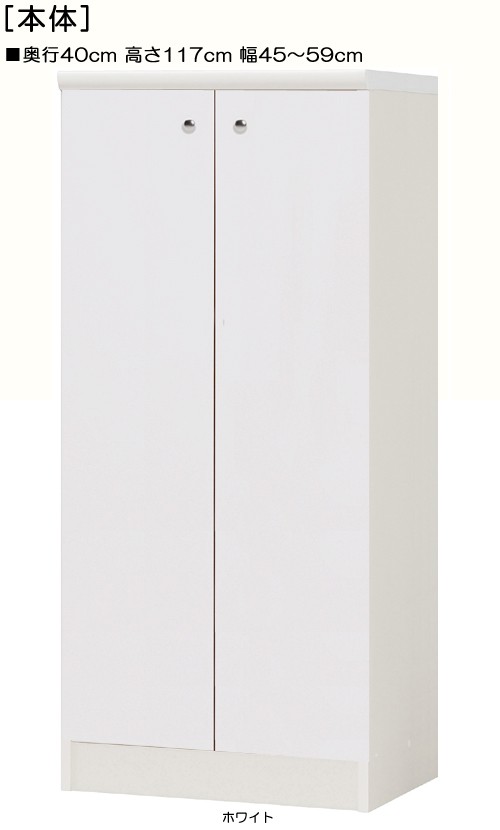 | 全面扉 | 標準棚板(厚さ1.7cm) | 棚板耐荷重:4Kg | 奥行40cm | 高さ117cm | 幅45〜59cm | お客様組立て | 低ホルムアルデヒド |