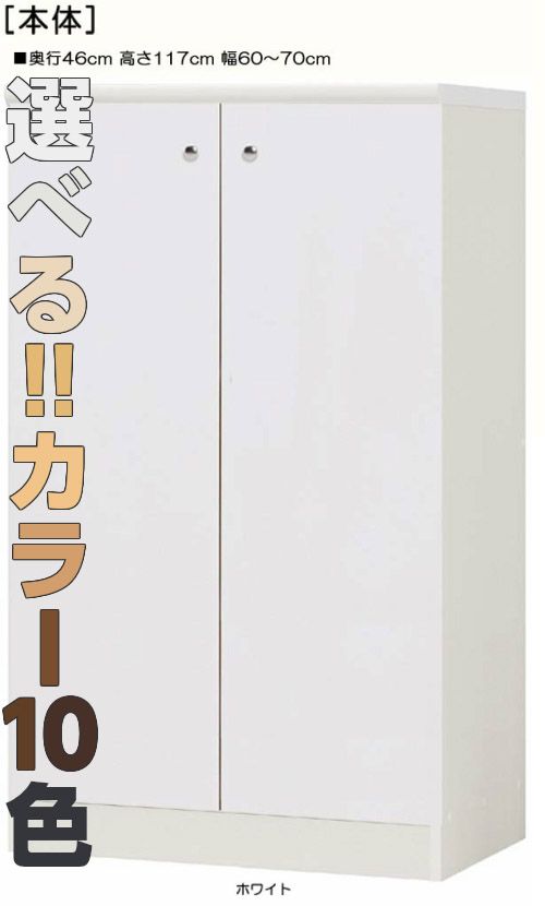 | 全面扉 | 標準棚板(厚さ1.7cm) | 棚板耐荷重:5kg | 奥行46cm | 高さ117cm | 幅60〜70cm | お客様組立て | 低ホルムアルデヒド |