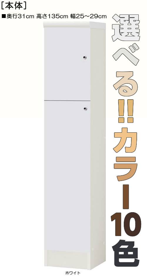 | 全面扉 | 標準棚板(厚さ1.7cm) | 棚板耐荷重:10Kg | 奥行31cm | 高さ135cm | 幅25〜29cm | お客様組立て | 低ホルムアルデヒド |