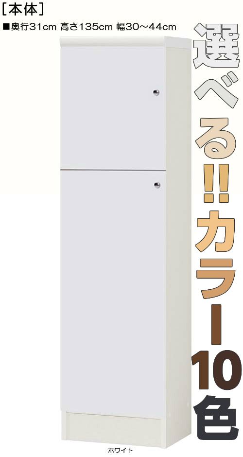 | 全面扉 | 標準棚板(厚さ1.7cm) | 棚板耐荷重:10Kg | 奥行31cm | 高さ135cm | 幅30〜44cm | お客様組立て | 低ホルムアルデヒド |