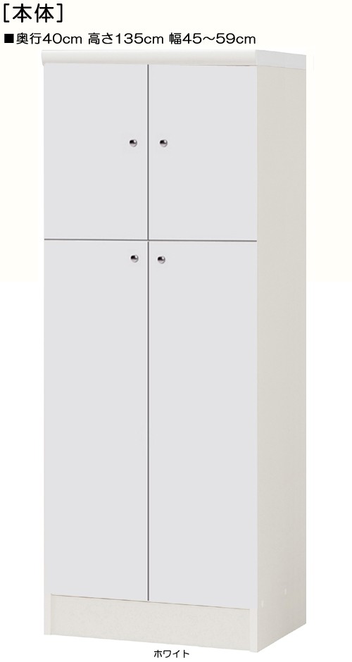 | 全面扉 | 標準棚板(厚さ1.7cm) | 棚板耐荷重:4Kg | 奥行40cm | 高さ135cm | 幅45〜59cm | お客様組立て | 低ホルムアルデヒド |
