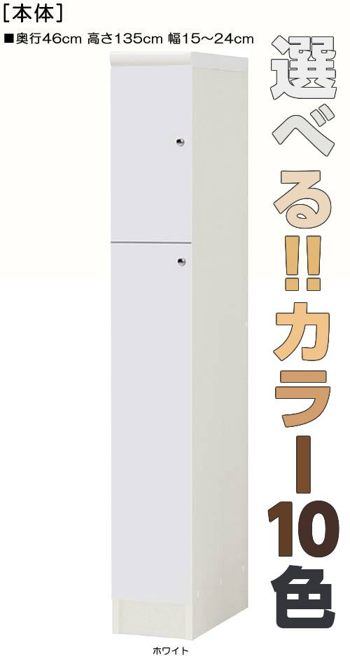 | 全面扉 | 標準棚板(厚さ1.7cm) | 棚板耐荷重:10Kg | 奥行46cm | 高さ135cm | 幅15〜24cm | お客様組立て | 低ホルムアルデヒド |