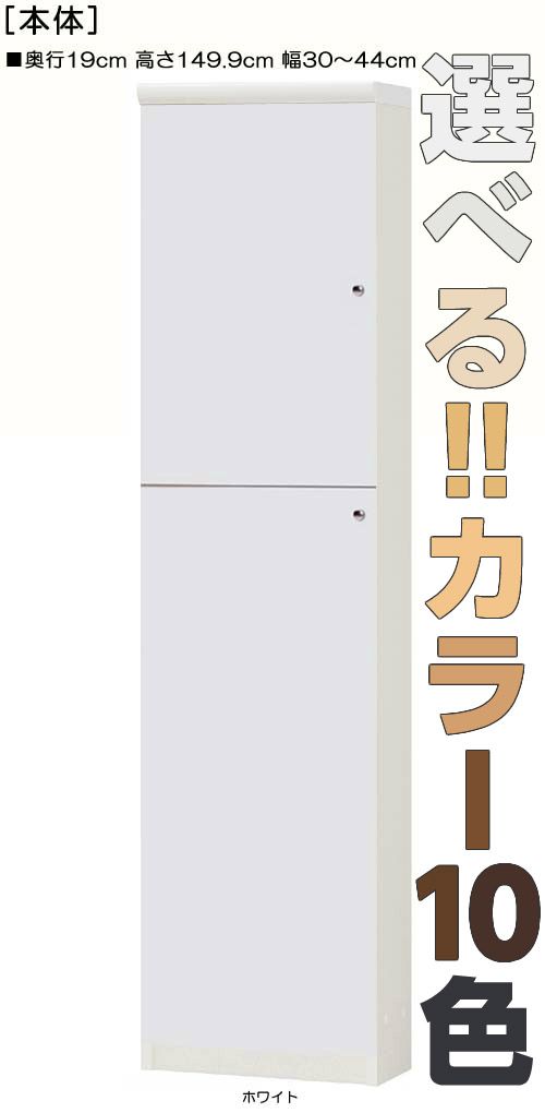 | 全面扉 | 標準棚板(厚さ1.7cm) | 棚板耐荷重:9Kg | 奥行19cm | 高さ149.9cm | 幅30〜44cm | お客様組立て | 低ホルムアルデヒド |