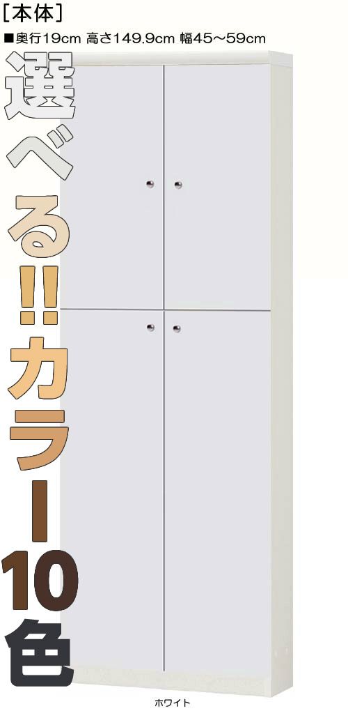 | 全面扉 | 標準棚板(厚さ1.7cm) | 棚板耐荷重:4Kg | 奥行19cm | 高さ149.9cm | 幅45〜59cm | お客様組立て | 低ホルムアルデヒド |