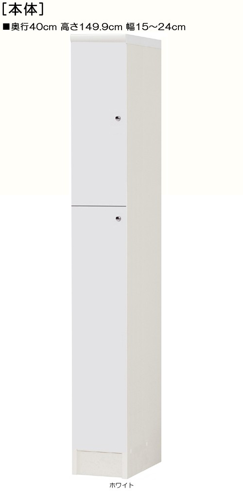 | 全面扉全面扉付きスリム収納 (棚板厚さ1.7m) 奥行40cm×高さ149.9cm×幅15〜24cm 幅は1cm単位で指定 |