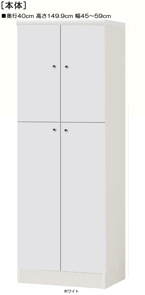| 全面扉 | 標準棚板(厚さ1.7cm) | 棚板耐荷重:4Kg | 奥行40cm | 高さ149.9cm | 幅45〜59cm | お客様組立て | 低ホルムアルデヒド |